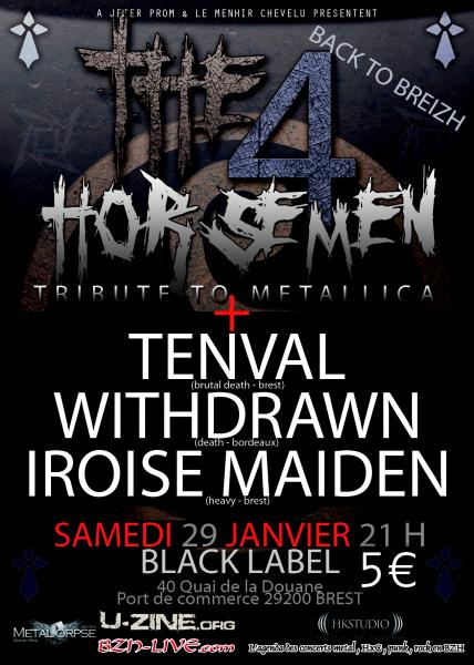 THE FOUR HORSEMEN (Tribute to Metallica) + TENVAL + WITHDRAWN + IROISE MAIDEN en concert à Brest au Black label, le samedi 29 Janvier 2011.