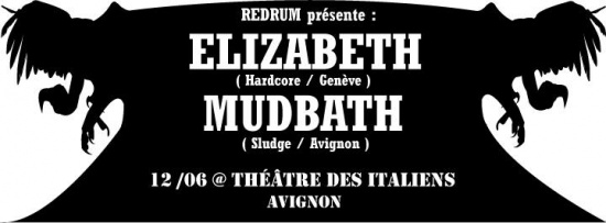 Les Suisses Elizabeth (Hardcore brutal) seront en concert le 12 juin à 20h au Théâtre des Italiens (salle intra muros), dans le cadre de la tournée promo de leur EP Insomnia. Pour l’occasion, le groupe sera accompagné des excellents Mudbath (Sludge boueux), qui reviennent jouer chez eux pour la première fois depuis un an et demi.