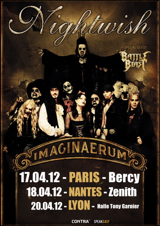 Côté scène, c’est le 17 avril 2012 au Palais Omnisports de Paris Bercy (!!!) que Nightwish retrouvera le public français avant d’enchaîner sur un concert au Zénith de Nantes (le 18 avril) et à la Halle Tony Garnier de Lyon (le 20 avril). Des salles à la mesure du succès croissant que Nightwish rencontre dans l’Hexagone et qui permettra à ce quintette, formé en 1996 par Tuomas Holopainen (claviers), de présenter un spectacle à la mesure de sa musique : grandiose !