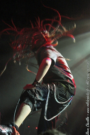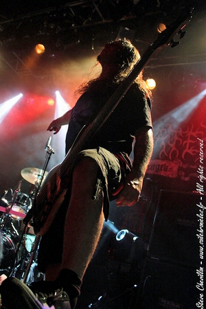 Une bonne initiative hydraulique offerte par un vigile, une quinzaine de minutes et 2000 ans plus tard, c’est au tour des Polonais répondant au doux nom de Decapitated de monter sur scène. Changement radical de style, puisque l’on a affaire, ici, à du death très technique. J’ai même parfois l’impression qu’ils versent dans le mathcore, au niveau des structures, complètement alambiquées, avec des changements incessants… Cette fois-ci, c’est le bassiste qui est de mon côté, très impressionnant techniquement, il l’est aussi niveau prestation. A l’instar des autres membres du groupe, pas un instant pour respirer, ils semblent tous complètement hyperactifs. Ça saute, ça bouge sans cesse, ça headbangue… un vrai cauchemar pour photographe! Cela accentue d’autant plus le fait que leurs prédécesseurs étaient plus « calmes ». Le son reste toujours aussi bon, et même si j’entends beaucoup la basse (proximité oblige), celle-ci ne cache pas le reste, et, de toutes façons, elle est si technique, que c’est un régal de l’écouter. Ce second set passe aussi vite que le premier, et, comme tout doit avoir une fin, Decapitated rentre dans les coulisses.