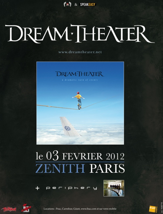Commençons par parler du groupe de première partie, j’ai nommé « PERIPHERY ». Il s’agit d’un groupe américain dans un style proche de MESHUGGAH. Je dois dire qu’il faut avoir un certain courage pour jouer devant une salle remplie de fans de Dream Theater car la moindre fausse note ne passe pas inaperçue. Le public n’a pas eu trop le temps, ni l’occasion de se faire un jugement car le son n’était pas défini à part une grosse caisse énorme on entendait à peine les 3 guitares. Le chanteur Spencer Sotelo n’a pas réussi à nous captiver pendant ces 30 minutes.