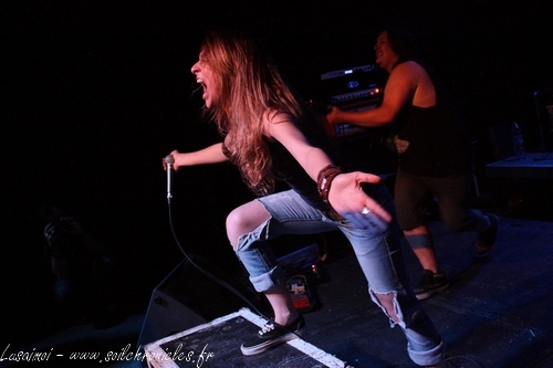 Si vous êtes amateur de Modern Metal Français, Gravity, vous devez connaître, parce que depuis la sortie de leur premier album, il fait bien parler de lui (et si vous êtes fan de cinéma, c’est pas du même qu’on parle). Moi, je les avais déjà vus à Lyon, avec Aesmah, en 2010, avant la sortie de leur premier album. À l’époque, mon copain Bodom remarquait un manque de maturité dans le jeu de scène, avec une Emilie, chanteuse, un peu timide (il évoquait le syndrome « envie de faire pipi »). Mais depuis, le temps a bien passé. On a déjà pu l’apercevoir dans la différence entre leur deux albums, Syndrôme et Eutheria, avec des compos bien plus mûres pour le second.