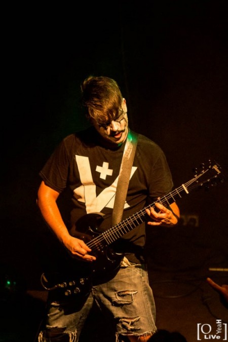Le temps de descendre une bière et ce sont les lascars de Charlie’s Frontier Fun Town alias CFFT qui s’emparent de la scène. Il convient de noter que tous les membres du groupe ont joué le jeu en montant sur scène maquillés. Le métal stoner couillu de nos amis déchaine l’ampérage, petites culottes lancées sur scène (merci les mystic girls), un slameur dénudé qui passera de main en main en tentant de ne pas se faire écraser ce qui lui sert de citrouilles ^^ (bien joué Mr Buzz Prostate). Sur scène ça envoie du bois (à ce niveau on peu même parler de forêt de baobab tellement ça déménage). Il faut dire que ça joue vraiment bien et que la foule de la fosse transcende les CFFT. Le groupe vient de sortir son premier album et je ne peux que vous conseiller d’aller le commander chez votre disquaire préféré.