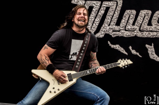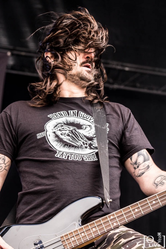 La journée se poursuit avec Mustach qui officie dans un registre rock bien agréable. Les suédois sont bien en place et au fur et à mesure de leur set la foule devient plus importante. Les musiciens semblent heureux de jouer, en témoignes les nombreux sourires échangés. D’ailleurs à la fin du concert le chanteur ralf Gyllenhammar vient prendre un bain et pensant prendre un pichet de bière le porte à sa bouche avant de se rendre compte mais trop tard que la soit disant bière est plutôt du muscadet d’où une grimace plutôt rigolote et un « what the fuck is thats » ? Et oui mec le hellfest c’est le pays du muscadet.