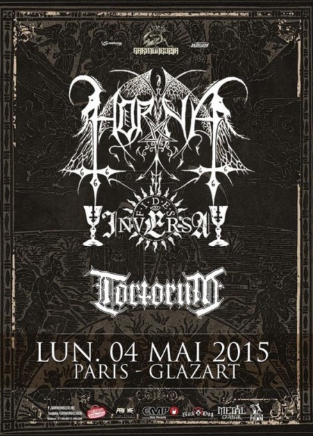 Du métal noir, c’est au moins une fois par mois à Paris ! Et ce mois de mai commence avec du très bon. Garmonbozia nous a fait un beau cadeau une fois de plus en nous amenant les norvégiens de Horna au Glazart pour une soirée ténébreuse en l’honneur de Satan. Ils seront accompagnés par leurs disciples: les norvégiens de Tortorum, qui les avaient déjà escortés en 2012 (avec Blacklodge) et les italiens de Fides Inversa.