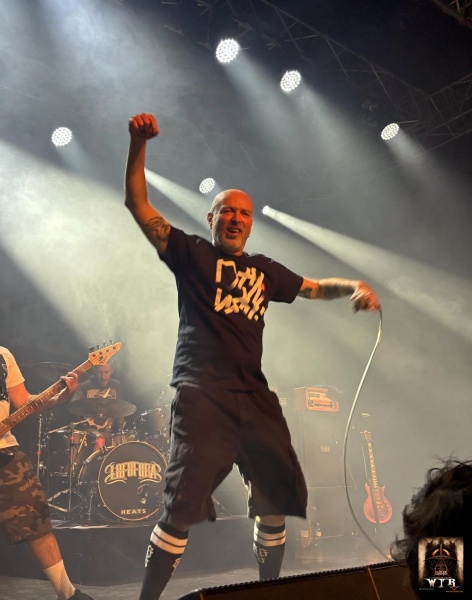 Reuno arrive aux taquets avec son bermuda et ses grandes chaussettes qui lui arrivent aux genoux. Direct, il envoie la sauce ! Le groupe commence son set par « Apocalypse ». Ce titre est issu de leur dernier album, « Coeur de cible » sorti en 2024. Malgré ses 35 ans de carrière, son timbre de voix est toujours aussi rageur, reconnaissable entre tous, unique. C’est toujours très rentre-dedans et Reuno n’hésite pas à balancer son venin.