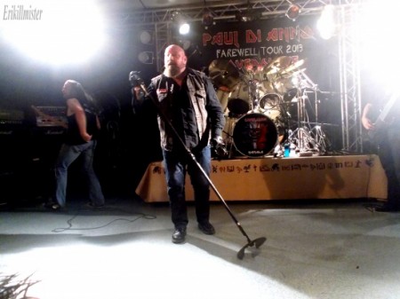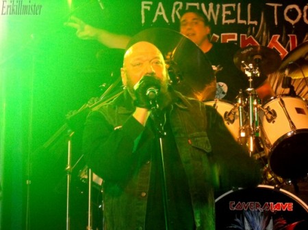 Retour à l’album « Killers » ensuite avec « Murders in the rue Morgue » et « Genghis Khan » se succédant, avant un nouvel intermède, assez émouvant celui-là ou Di Anno dédiera « Remember tomorrow » à son grand pote Clive Burr lui aussi un ex-Maiden, récemment disparu (il lui donnera même rendez vous pour un barbecue en enfer). La chanson est très bien exécutée, on sent qu’elle lui tient à cœur. S’ensuivront « Charlot the Harlot« , puis « Killers« , « Phantom of the opera » (pas la meilleure du spectacle, mais bon, on lui pardonne, le show touchant à sa fin, on sent que le mec est fatigué) et « Running free » sera annoncé comme la fin du concert, mais Paul reviendra pour d’abord laisser la vedette à Coverslave sur l’instrumental « Transylvania« , avant de finir sur le mythique Iron Maiden. Une petite heure de concert et c’est (malheureusement !) déjà terminé.