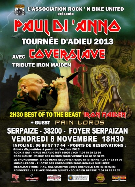 Ce soir, c’est d’une immense légende dont il s’agit, Monsieur Paul Di Anno !!! Bon, ça avait plutôt mal commencé, Pluie diluvienne tout le long du trajet, perdu une fois la route (malgré le GPS !) nous finissons par trouver ce village du nom de Serpaize ou Paul joue ce soir.