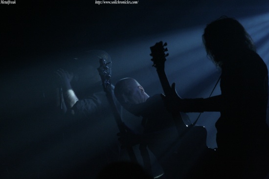 Certes, voir un groupe comme Paradise Lost se produire dans la petite salle du Transbordeur a sans doute de quoi en frustrer plus d’un, mais d’un autre côté, lorsque les préventes sont aussi faibles, il ne fallait pas s’attendre à aller les voir dans la grande salle. Si les Lyonnais ne se sont pas déplacés en masse, c’est peut être aussi parce qu’ils n’ont pas oublié la prestation en demi teinte des anglais lors de leur dernier passage et n’ont éventuellement pas eu envie de se déplacer à nouveau pour eux (voir live report ici), même un samedi soir de pont, même si Gerland n’était pas occupé par l’Olympique Lyonnais ce soir là ! Toujours est-il que c’est sur la même scène qu’Iced Earth deux mois plus tôt que Swallow The Sun et Paradise Lost ont joué et si les américains ont foutu un feu de tous les diables, on ne peut pas prétendre la même chose des groupes de ce soir.