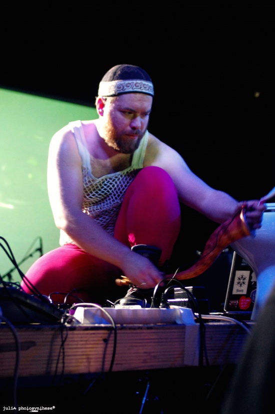 Et bien Zweizz alias Svein Egil Hatlevik, originaire d’Oslo. Il nous sert une mixture entre IDM (intelligent dance music), une grosse base de noise, de l’électro acoustique et du black metal (enfin ça il faut le savoir!). Outre son projet solo on le retrouve en groupe avec Fleurety, mais on le connait surtout pour son passage dans un excellent groupe de black metal… mais pour ceux qui ne le savent pas, je vous réserve la surprise après vous avoir peint la performance du garçon.