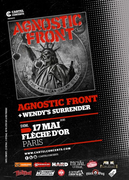 Amis coreux, les célèbres Agnostic Front sont de passage à Paris le 17/05/2015, une date et un groupe que vous n’avez pas le droit de louper ! Et c’est Wendy’s Surrender qui initiera le carnage !