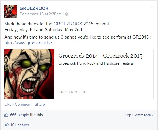Le Groezrock, festival belge de Hardcore, Punk, et Metalcore situé à Meerhout, vient d’annoncer des dates de son 24ème edition festival sur Facebook.