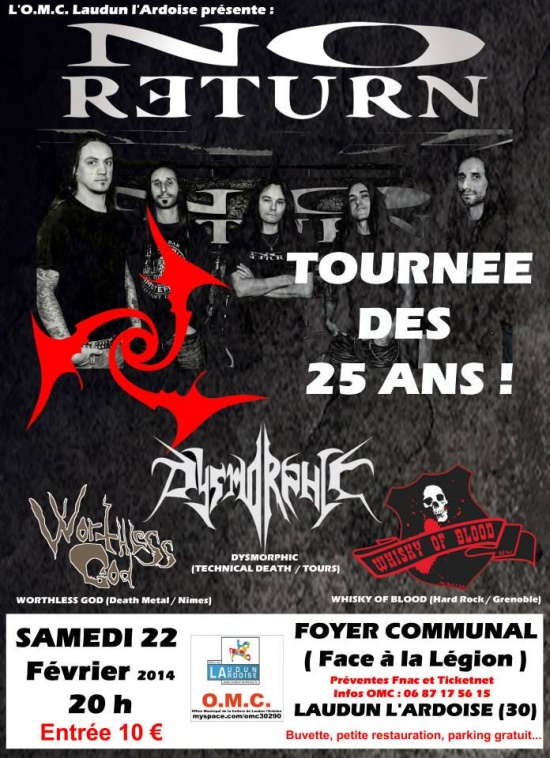 No Return + Worthless God + Whisky Of Blood + Dysmorphic en Février ...