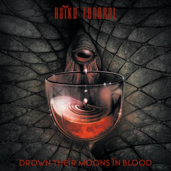 Sincèrement, je n’ai pas été spécialement emballé par l’artwork de l’album. Je m’attendais à mille fois mieux, d’autant que les propos dithyrambiques du label Aesthetic Death m’avaient pour une fois donné l’eau à la bouche. J’ai vu les mots ésotérisme, chamanisme, drone, etc. Je m’étais dit que l’artwork sentirait bon l’occulte, quand on connait l’attrait de Dimitar Dimitrov pour tout cela. Et en fin de compte, non. Je dirais qu’on a un vulgaire artwork, pas franchement beau, voire même sans saveur spéciale. Je dirais même que sur la symbolique on est sur du très simple, du bâclé. Que dire de cet œil de reptile (serpent ?) qui larmoie du sang dans un calice ?… Moi, je ne comprends pas pourquoi les groupes aussi prometteurs que Haiku Funeral ne mettent pas le paquet sur tout, à commencer par LE truc qui accroche l’œil avant l’oreille et qui est la pochette. Cela devient limite pénible… Décourageant. Disons que cela a fortement cassé ma dynamique, que j’ai perdu une quantité assez phénoménale de motivation à continuer. Enfin, sincèrement, si le groupe me lit on ne sait jamais, et surtout en tout respect, faites mieux ! Même les précédents artworks étaient esthétiquement plus attirants. Bon, on ne va pas polémiquer cent sept ans, retenons que cet artwork est une erreur monumentale et que la majorité du public metal se contre-fiche de ce dernier, cela n’enlèvera pas d’atouts au reste mais j’aurais vraiment souhaité mieux. Plus appétissant que cette feuille-de-choux triviale.