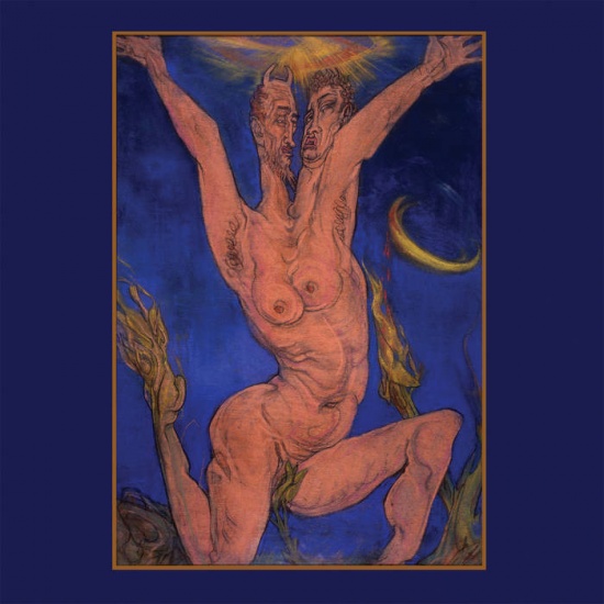 J’en ai fait des pochettes, j’en ai poncé pas mal visuellement parlant, mais une comme celle-ci c’est rare. Et c’est même l’une des plus loufoques que j’ai pu voir. Il y a donc un être humain bicéphale, deux têtes d’hommes, sur un corps de femme ou du moins féminisé avec une poitrine, dont le sexe est caché par une plante bizarre. Je n’ai pas pu vérifier qui a fait l’artwork mais j’ai déjà vu ce type de truc étrange sur le label I, Voidhanger Records donc on peut supposer que c’est le label qui a proposé cet artwork. Il y a un mélange de styles qui me semble plutôt cocasse en fait, même si je me doute que ce n’est pas l’intention principale. Mais j’y vois du mythologique avec la tête qui fait penser à Pan, du religieux avec l’espèce d’auréole au-dessus des têtes, les pieds en feu me font penser à une forme démoniaque. Enfin voilà ! Il y a clairement un truc très psychotique, et donc dérangeant dans cette pochette. Par contre j’adore le fond bleu, c’est une couleur que j’adore ! On dirait un ciel nocturne, avec un croissant de lune en biais. C’est assez insondable comme pochette, et c’est le petit reproche que je vais faire. Mais ce reproche est inhérent à mon incompréhension générale, si j’avais pu cerner la définition derrière j’aurais certainement été moins circonspect. Sur la forme, c’est aussi un peu contestable ce côté brouillon ou grossier, mais cela vient aussi de mon avis personnel. C’est donc une pochette qui ne me laissera pas un grand souvenir, d’autant qu’il n’y a pas le nom du groupe ni celui de l’album The Whole of the Body I Call ZOS présent dessus, et ça, ça m’a toujours posé problème.
