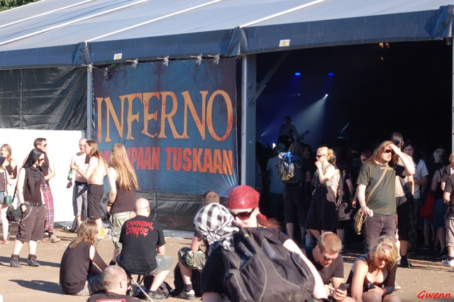 L’espace Presse est toujours bourré de « gratin metallique », toujours marrant d’avoir Ihsahn derrière soi en mangeant, ou Peter Tängren (Hypocrisy), mais attention, pas de « groupisme » en Finlande. On ne se jette pas sur les gens, on les croise comme ça, et à la limite, on dit bonjour quand la personne est disponible. C’est ce respect mutuel qui apparemment, fait que les artistes resteront accessibles, pouvant montrer leur nez sans problème de brochettes de filles aux fesses. J’avoue encore une fois qu’avoir Satyr et Frost dans un rayon de 5 mètres autour de moi m’a posé un gros souci de déconcentration Samedi, mais il fallait s’y attendre (*glop*). Je rencontre tout de même dans cet espace bon nombre de personnes aussi intéressantes les unes que les autres… tant d’échanges encore très porteurs de choses nouvelles toujours et encore pour la même passion, la musique. A propos et après avoir jeté un œil (encore un !) sur un autre groupe local Turmion Katilot qui ne me marque pas, je vais voir Finntroll, toujours cet attachement affectif avec ce groupe que je vois donc cette année pour la troisième fois… et pour les Finlandais, ils ont changé leur Set-List, ajoutant des morceaux, faisant varier la chronologie du show, j’en connais dans mon entourage qui auraient été ravis de voir ce show ! (Clin d’œil à Finntroll France !)