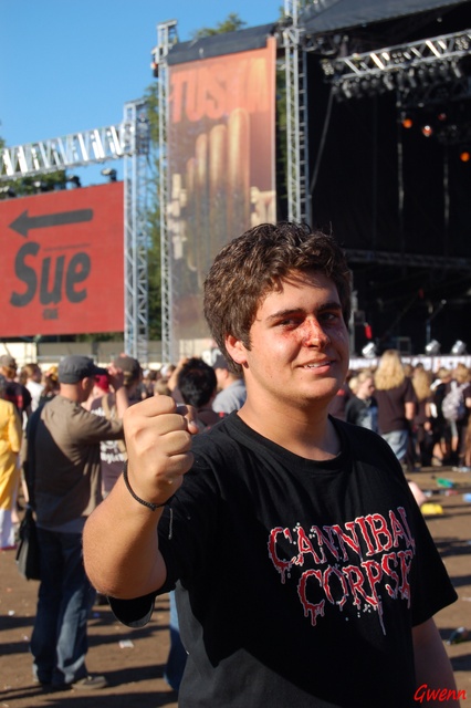 Cannibal Corpse. HAHA, ça change ! Du death Grind après Wasp, ça vous remue les cervicales ! Cannibal, c’est toutefois de la valeur sûre, et leurs prestations ne baissent pas en qualité. Bravo les mecs, ça fait un : moment que je vous suis depuis mes jeunes années alsaciennes, et ai été très heureuse de revoir vos tignasses !