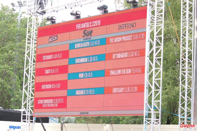 Les gens commencent à arriver vers 13 heures, le site se remplit rapidement, et je m’en vais faire un passage sur la Sue, où joue un groupe d’inspirations très mélodiques, Barren Earth. Présence d’un clavier bien prenant, une technicité où il n’y a rien à redire… et quand je pense que le claviériste avait peur du manque de public à cette heure-ci, je peux garantir que dans l’Inferno, pour The Arson Project, il y avait bien moins de monde !