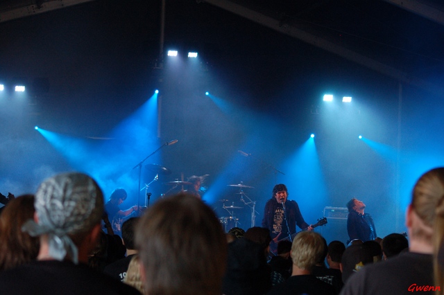 Pour rien au monde je ne raterai par contre la prestation d’Overkill, qui était… Oh, mon « Dieu du Metal », extraordinaire. Je sais que les annulations sont monnaie courante avec ce groupe, mais je peux vous affirmer que quand ils sont là, ils sont là !!! Bonds de kangourou, pêche à revendre, tous les classiques et morceaux phares y sont passés pour la plus grande jouissance des metalleux présents dans une tente encore une fois blindée de monde. Overkill !