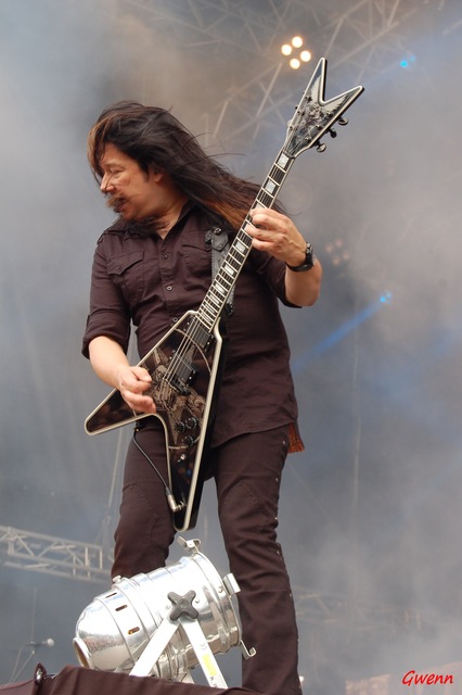 Tarot achèvera ensuite de nous mettre tout à fait dans l’ambiance du Tuska. Ils sont Excellents, généreux, tout en maturité technique. Ils nous proposent un Heavy d’une rare qualité, et je suis impressionnée par leur décontraction, et surtout cette capacité de pouvoir jouer de la guitare le mégo au bec. Style, expérience, on m’avait conseillé Tarot et je suis loin d’être déçue.