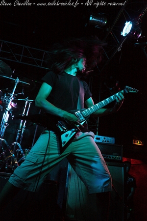 On change de registre avec l’entrée en scène d’Aesmah et de son death mélodique à rapprocher d’un Insomnium (pour les parties guitares) et d’un Dark Tranquillity (pour les nappes de clavier). Un clavier d’ailleurs difficilement audible (Lyon’s Hall oblige) hormis en mode ‘piano’ sur les parties plus calmes, ce qui est d’autant plus regrettable qu’il contribue intelligemment à renforcer les atmosphères du groupe. Oui, car l’un des points forts du groupe, comme son confrère finlandais cité plus haut, consiste à alterner des riffs typiquement death-mélo à des parties acoustiques bien moins vindicatives. Techniquement rien à redire, des grattes au chant, chacun assure avec brio ses parties respectives (mention spéciale au batteur, doté d’un sacré bagage technique). Là aussi le groupe en pleine préparation du successeur de sa démo « Hegemony« , présentera plusieurs nouveaux titres dont un instrumental. Aesmah a donc assuré un show de bonne facture laissant présager de bonnes choses pour la suite.