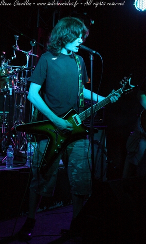 Après plusieurs annulations et remplacements, ce sera à Soul Tripper d’ouvrir les hostilités. Malgré sa jeune moyenne d’âge, le combo ne parait pas trop impressionné et maîtrise d’ailleurs bien une prestation oscillant entre du Megadeth et du Metalloche période « Black Album« . Des influences flagrantes que la reprise, entre autres, du ‘Enter sandman’ des Four Hoursemen ne viendra que confirmer. Ses similitudes avec les deux géants du heavy-thrash à l’américaine ne sauraient s’arrêter là, puisque le guitariste-chanteur de la formation en plus d’avoir la même tignasse que le père Mustaine, ne pourra s’empêcher de ponctuer ses phrases des « yah » si chers à James Hetfield. Mais tout cela n’empêche absolument pas le groupe d’envoyer la sauce avec ses propres compos et le public d’en apprécier pleinement la prestation. En tout cas, le quatuor a fait bonne impression et gageons qu’en se démarquant davantage de ses influences, Soul Tripper devrait faire parler de lui.