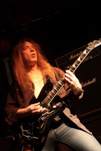 On passe maintenant à RAVE AGE, groupe signé récemment chez SNAKEBITE Prod avec leur album « Right Now ». Là aussi, ça doit sûrement faire la quatrième fois que je les vois mais c’est toujours un bon moment de bonheur. Un Thrash moins rapide ainsi que des passages instrumentaux moins longs comparé à BURNING SKULLS et même s’ils opèrent dans la même catégorie, on ne peut pas dire qu’ils soient réellement en grande concurrence. En effet, RAVE AGE possède également son propre style avec un son analogique bien marquant (que le groupe revendique d’ailleurs). Pour parler du groupe en lui-même, c’est du Thrash bien lourd qui envoie tout ce qu’il faut pour rester captivé à leur concert (et qui avait le don de faire oublier le froid dans la salle). Également, ce sont des musiciens bien sympathiques qui savent discuter avec le public (surtout le Marco avec son bon accent du sud !). Et comme BURNING SKULL, nous avons eu droit aussi à une dernière chanson interprétée en Français qui cette fois, était plus compréhensible que le groupe d’ouverture. Merci RAVE AGE qui nous salue !