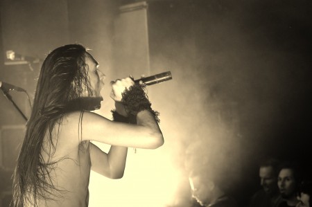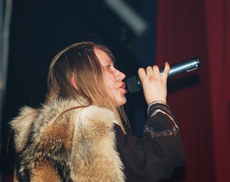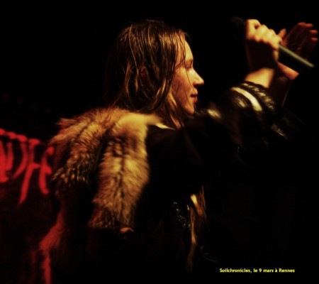 Changement de plateau! Surprise pour certains, c’est Arkona qui enchaîne. J’avais aussi un peu peur, des informations circulaient comme quoi le groupe signé chez Napalm Records en 2009, ne jouait que 30 minutes au total, et ça m’inquiétait. Arkona est un groupe que l’on ne verra pas tous les jours en France. Les ayant loupés au Cernunnos Pagan Festival IV, je me demandais si leur prestation serait aussi efficace que celles que j’avais lues dans certains live-reports. Pour infos, c’est une jolie russe blonde au chant, pas très grande, toujours vêtue d’une peau de bête, et qui ne devait pas avoir froid ce soir-là, entourée de « personnalités » comme Ruslan et Sergei. Le groupe s’installe donc, et on attend la chanteuse qui débarque et qui lance le show.