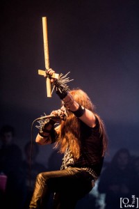 On commence avec Carpathian Forest. Petite déception personne dans la fosse aux photographes pour cause de pyrotechnie. Mouais si on veut, quelques flammes sur le premier titre et c’est tout. Du coup pourquoi ne pas avoir fait entrer les photographes sur les titres 2 3 et 4 ? Sinon niveau musique les norvégiens connaissent le protocole. Croix inversée ; clous, maquillage tout est là. Le malin n’est pas bien loin, d’ailleurs il serait pratiquement possible de lui toucher les cornes s’il se montrait tellement Carpathian Forest met en avant son annihilation et sa haine.