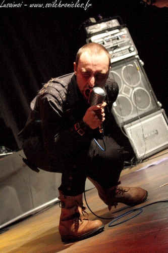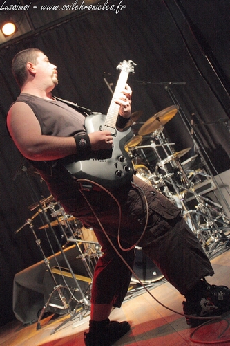 us introduit particulièrement bien à l’univers post-apocalyptique du groupe. D’autant plus que le son est, comme tout le long de la soirée, absolument impeccable. On entend tout, rien n’est caché par le son des guitares, que ce soit la basse, qui vrombit dans l’estomac, le chant guttural, encore plus profond que sur CD, et, chose plus rare en live, la voix claire (qui est juste géniale, en passant).