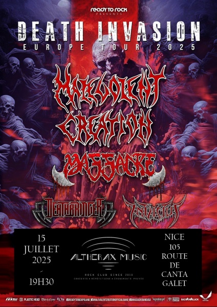 Nouvelle soirée organisée par Dead Rose Entertainment à l’Althérax, avec des pointures du death metal américain : Malevolent Creation et Massacre, accompagnés des death/thrashers Japonais Invictus et des Biélorusses de Deathbringer, dans le cadre de la tournée Death Invasion Europe Tour 2025.
