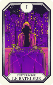 L’arcane représentant Perturbator est le Bateleur (ou le Magicien), il brille par sa créativité, sa volonté et son talent dans la musique électronique.
