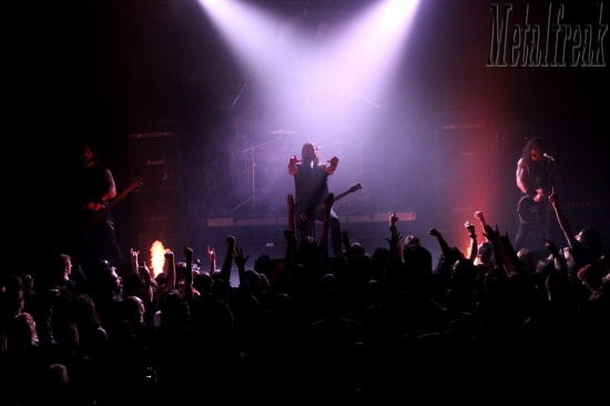 Et le public ne s’y est pas trompé : ça a d’entrée commencé à secouer de la crinière sous les riffs féroces, la rythmiques endiablée et le chant haineux distillés sous un son énorme, avec un setlist faisant honneur aux quatre albums du groupe