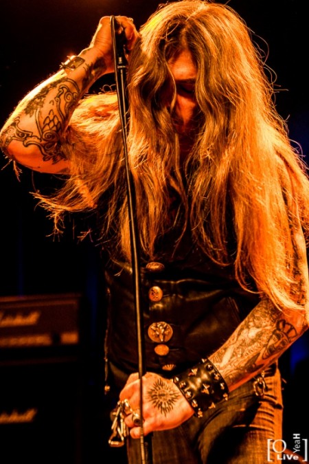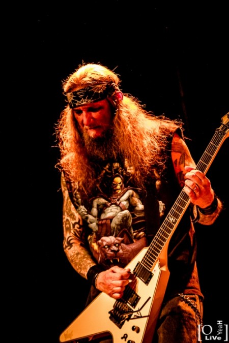Le temps d’effectuer le changement de plateau, les lumières s’éteignent et « Vertigo » (l’instrumental de « Lillie F65 ») signale l’entrée de SAINT VITUS sur scène. Le temps de se mettre en place, de boire une gorgée de Jack Daniel’s et « Blessed night » est la première déflagration que nos oreilles vont prendre plaisir à encaisser.