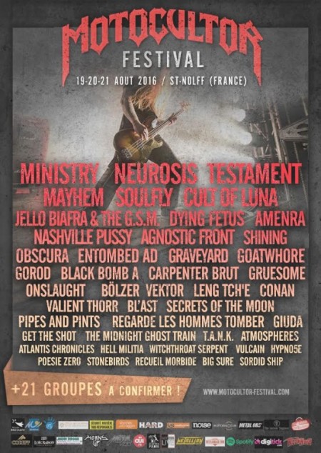 Les groupes SOULFLY, CULT OF LUNA, AMENRA, BLACK BOMB A, GRUESOME, LENG TCH’E, WITCHTHROAT SERPENT, RECUEIL MORBIDE et POESIE ZERO s’ajoutent à l’affiche du Motocultor Festival 2016 !