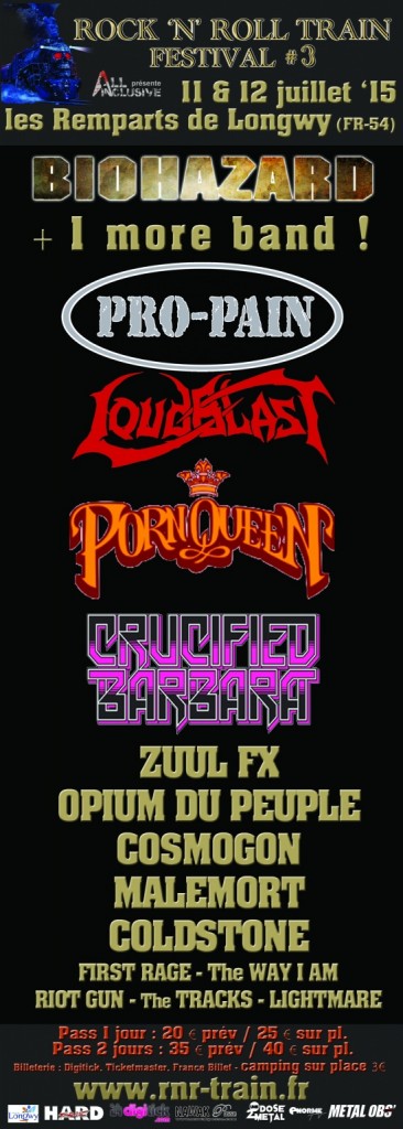 Les premiers noms, en attendant la dernière annonce très prochainement, sont : Biohazard, Pro-Pain, Crucified Barbara, Loudblast, Zuul FX, Porn Queen, Opium du peuple, Malemort, Coldstone, First Rage, The Way I Am, Cosmogon, The Tracks, Lightmare, Riot Gun !!