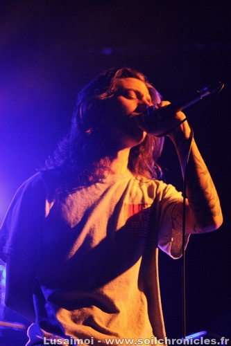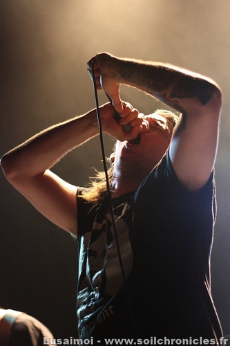 Mais en attendant de voir cette tête d’affiche alléchante au possible, c’est un groupe local, qui a la tâche de chauffer la salle. Above the North, qui, ce soir, offre leur dernière prestation avant leur séparation. Une chouette prestation d’ailleurs, bien vindicative, même si on devine encore la jeunesse du groupe, avec un guitariste plus concentré sur son instrument (sans s’effacer non plus) et un chanteur dont on sent un peu qu’il se dit « Faut que je fasse le show » (le bassiste, par contre, nickel). Des critiques bien négligeables, car la fougue et l’envie a dominé ce soir, et si on ne pourra pas revoir le groupe en l’état, on va suivre la nouvelle formation (car oui, nouvelle formation il y aura) qui va naitre de ce split.