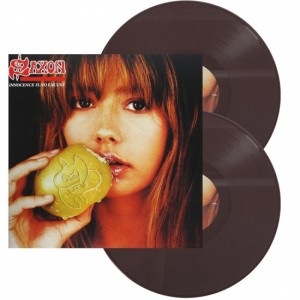 Mais d’abord , leur ex-label va sortir la première ( d’une longue série!!!) compilation du groupe » Strong Arm Metal » . Comme il fallait s’y attendre , elle ne se vendra pas bien…car les fans possèdent déjà les disques , donc , aucun intérêt , sauf pour ceux ( mais ils ne sont pas nombreux ! ) qui ne connaissent rien du groupe . Le premier opus de Saxon chez EMI sort donc en cette année 85 , titré » Innocence Is No Excuse » et le son est complètement aseptisé , les morceaux ne décollent pas , que ce soit » Rockin’Again » » Back On The Streets » ( titres à l’air prometteur, pourtant ) » Rock’N’Roll Gypsy » , » Broken Heroes » ( un titre promu d’un bon texte , puisqu’il dénonce l’horreur de la guerre) .Aux USA , l’album se hissera à la 36ème place du top 100 , mais en Angleterre et en Europe , la côte du groupe va commencer à dégringoler , malgré la tournée avec un jeune groupe Danois qui leur voleront presque la vedette : Pretty Maids , qui viennent de sortir leur premier album , le très prometteur » Red , Hot , & Heavy « . Et de plus , un des membres de Saxon va être viré du groupe : c’est Steve Dawson , le bassiste . Il faut dire que lors des concerts , ce brave moustachu n’arrêtait pas de saluer la foule !!! Ce qui faisait qu’il se plantait et le groupe aussi , de fait !