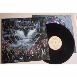 Donc , exit , Steve Dawson et son remplaçant est un jeune inconnu : Paul Johnson , qui arrive à temps pour les sessions du nouvel album du groupe qui atterrit dans les bacs en 1986 : » Rock The Nations » produit par Gary Lyons et comportant un invité de marque : Elton John en personne ! qui joue sûr deux titres : » Party ‘ Till You Puke » & » Northern Lady » . Et le groupe repart en tournée ! en Europe avec en ouverture un groupe qui vient de loin !!! puisqu’il s’agit des Japonais de Loudness ! ( ils sont passés au Zénith de Paris , le 2 novembre 1986 ) & aux USA avec Yngwie Malmsteen . Une vidéo du premier single » Waiting For The Night » sort et est diffusée entre autres sûr MTV , mais , rien à faire ….ça va de plus en plus mal pour le groupe : les fans » de la première heure » désertent les concerts , n’achètent pas les albums…..et , avec l’album qui paraît l’année suivante » Destiny » les choses ne vont pas s’arranger , bien au contraire ! Nigel Glockler , le batteur quitte ( temporairement ) le groupe c’est un autre Nigel ! qui le remplace , Nigel Durham . Et Saxon va obtenir un succès avec une reprise que l’on aurait jamais soupçonné ! puisque c’est la reprise du tube de Christopher Cross » Ride Like The Wind » ! Mais en 1988 , étant donné le ventes très faibles et les tournées boycottées , EMI décide de rompre le contrat avec le groupe……Pourtant en cette même année , c’est RoadRunner Records qui publiera un autre album live du groupe » Rock’N’Roll Gypsys » , mais il sera mal distribué , de même que l’album pour fêter les 10 ans de carrière de Saxon » Greatest Hits Live-10 Years Of Denim & Leather » ( mais il sera publié plus tard en DVD ). nous abordons les années 90…que va faire SAXON ?